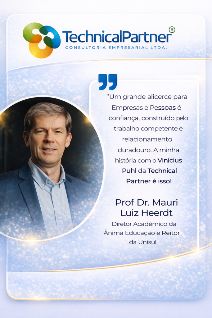 Quando olhamos para frente, diante de desafios cada vez mais intensos trazidos por novas realidades, somos permanentemente provocados a evoluir e melhorar. A mudança nos impulsiona. A Technical Partner é uma organização cuja natureza é ver além — enxergar o futuro sem perder o foco no dia a dia. Ao longo de sua trajetória, consolidou-se pelo reconhecimento à sua audácia, lealdade, confidencialidade e pelo zelo absoluto na condução dos projetos de seus Clientes, Parceiros e Colaboradores. Em 2026, celebramos com orgulho 15 anos de jornada, marcados por mais de 70 parceiros estratégicos, mais de 350 projetos de sucesso e por uma equipe dedicada, diversa e global, que transforma desafios em resultados consistentes. Seguimos adiante, com propósito, confiança e visão de longo prazo.